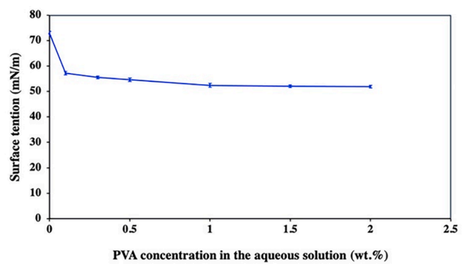 图6.PVA水溶液的表面张力与聚合物浓度的关系。