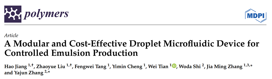 近期,南京航空航天大学张家铭教授团队联合盐城市第三人民医院副院长张亚军团队,开发出一种模块化且具有成本效益的液滴微流体装置,旨在实现复杂乳液的可控生成,其具有易于维护和可扩展的特点,有望在物理学、化学和生物学等领域得以广泛应用。相关研究以“A Modular and Cost-Effective Droplet Microfluidic Device for Controlled Emulsion Production”为题目发表于期刊《Polymers》。