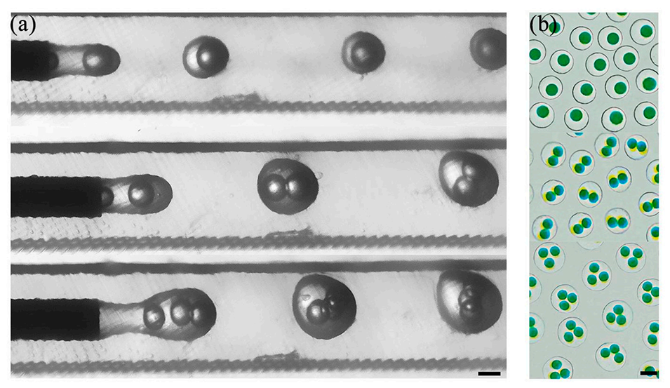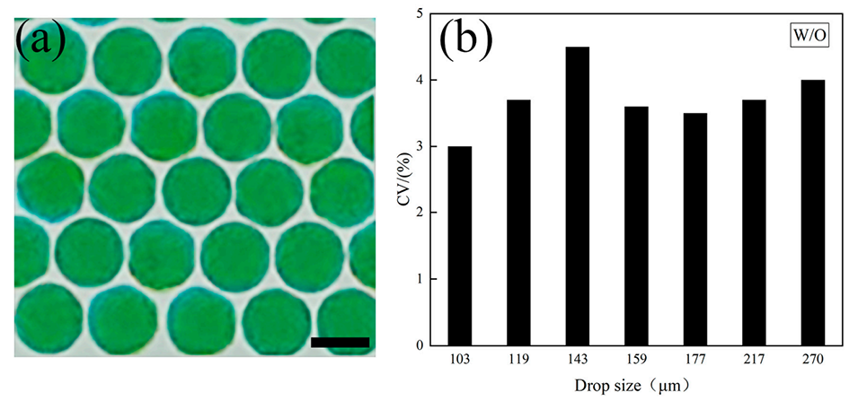 6、多功能性:该系统支持在同一设备中生成油包水(W/O)和水包油(O/W)单乳液,并且可以轻松扩展以生成具有不同数量封装液滴的复杂双乳液。