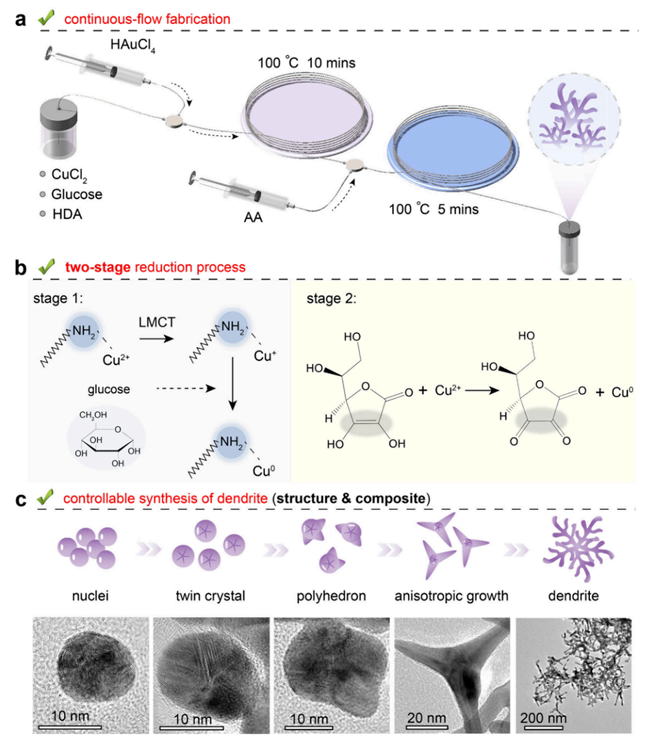 图1.通过微流体连续流动平台可控制备AuCu NDs。