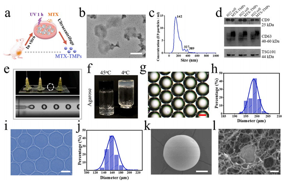 近期,温州医科大学附属第一医院孙维建教授、夏景林教授和Qingfei Zhang等共同开发了一种热响应性琼脂糖水凝胶微球(MTX-TMPs@MSs),用于递送载有甲氨蝶呤(MTX)的肿瘤细胞衍生微粒(MTX-TMPs),以实现对恶性腹水的协同化疗、光热治疗和免疫治疗。