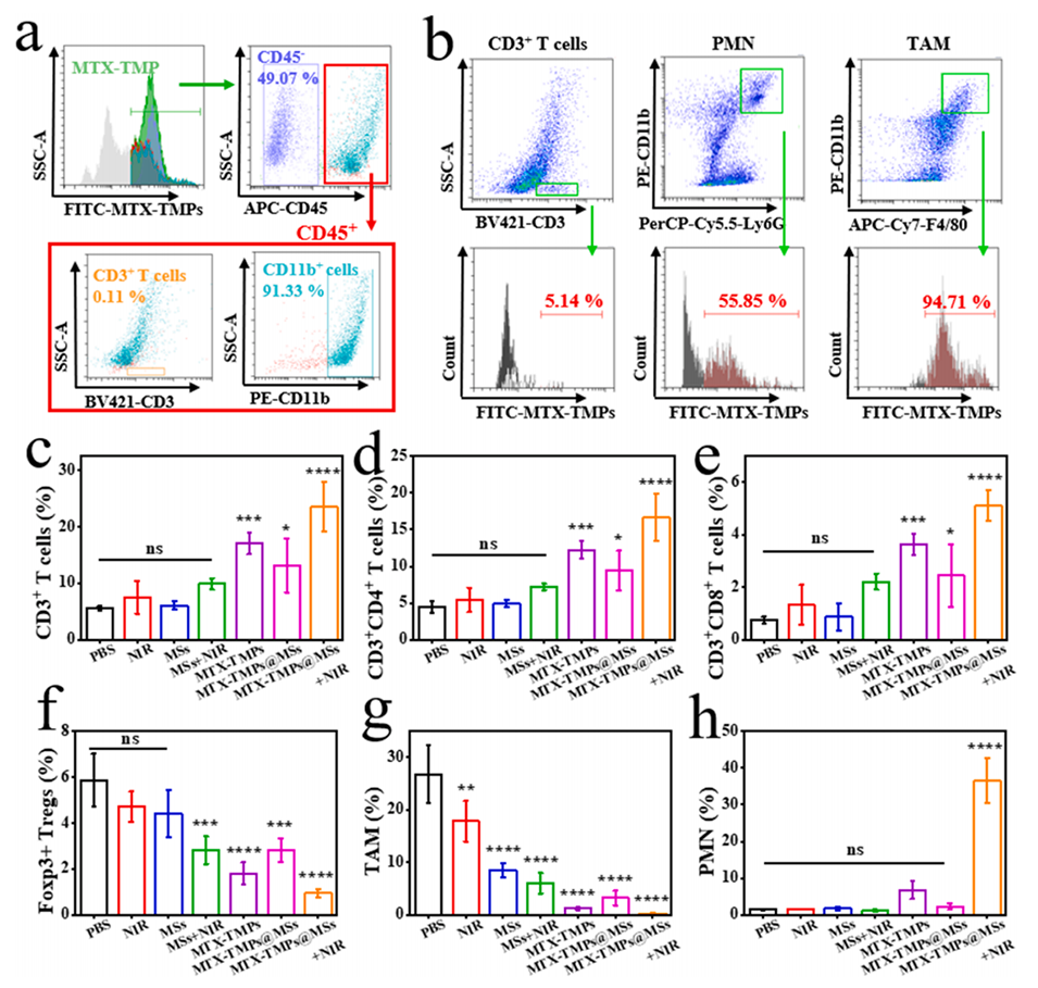 图6.MTX-TMPs@MSs介导的恶性腹水中免疫细胞浸润的变化。