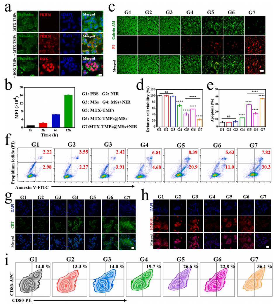 图4.MTX-TMPs@MSs的体外抗肿瘤作用。