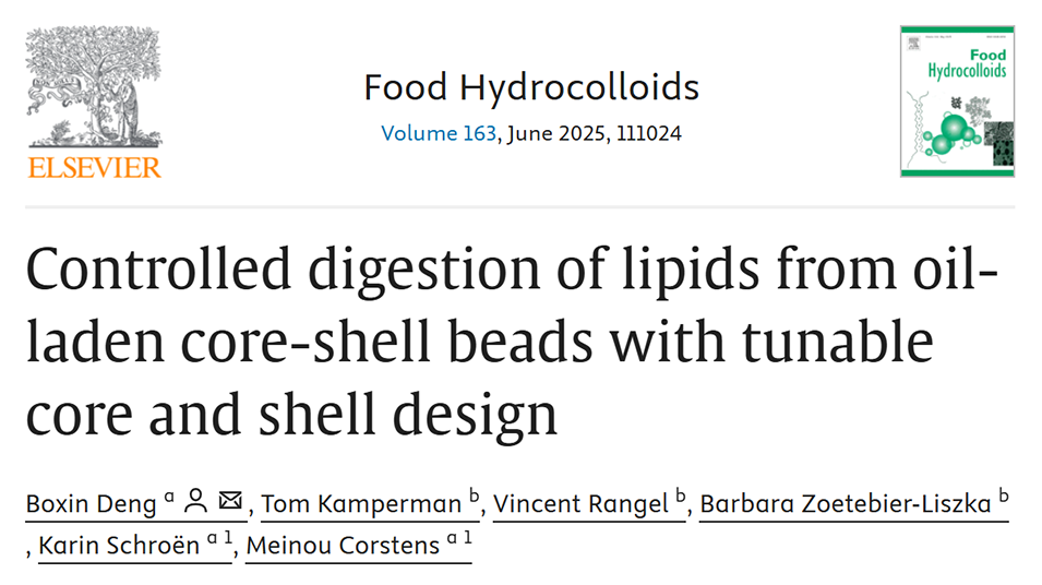 近期,瓦格宁根大学农业技术和食品科学系的研究人员通过设计不同核心和壳层尺寸及组成的油核-海藻酸钙外壳微珠,探究其在模拟胃肠道消化条件下的脂质消化行为,发现可通过调节核心尺寸、添加蜡类材料以及改变壳层交联密度和厚度等方式,有效控制脂质消化的速度和开始时间,为开发具有控食效果的功能性食品提供了理论依据。相关研究以“Controlled digestion of lipids from oil-laden core-shell beads with tunable core and shell design”为题目,发表在期刊《Food Hydrocolloids》上。