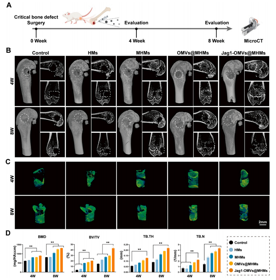5、在小鼠骨缺损模型中,这些微球加速了缺损愈合,表明其在临界尺寸骨缺损修复中的应用潜力。