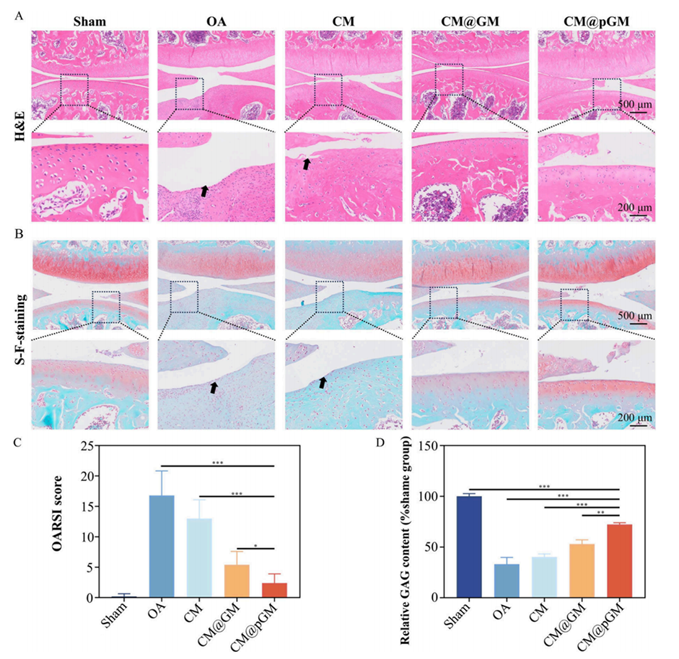 图6.CM@pGM在治疗OA大鼠4周后的组织学评估。