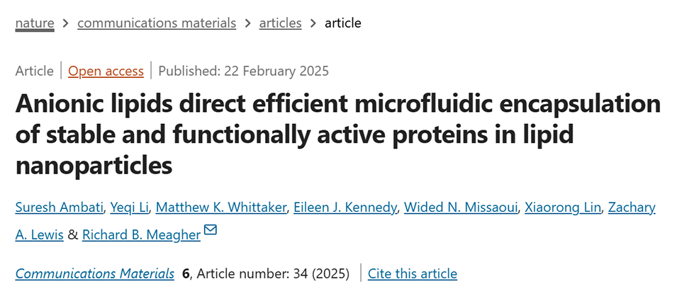 蛋白质药物在现代医学中占据重要地位,但由于蛋白质不能有效地穿过质膜,因此蛋白质治疗药物仅限于细胞表面或血清中的靶标配体。脂质纳米颗粒(LNP)作为一种有效的药物递送载体,已被成功应用于mRNA疫苗(如新冠疫苗)的开发。然而,将蛋白质封装在LNP中并实现高效细胞内递送仍然是一个技术难题。近期,乔治亚大学的Richard B. Meagher等在《Communications Materials》上发表了一项突破性研究,提出了一种利用微流控技术将蛋白质高效封装在LNP中的方法,为蛋白质药物的细胞内递送提供了新的解决方案。