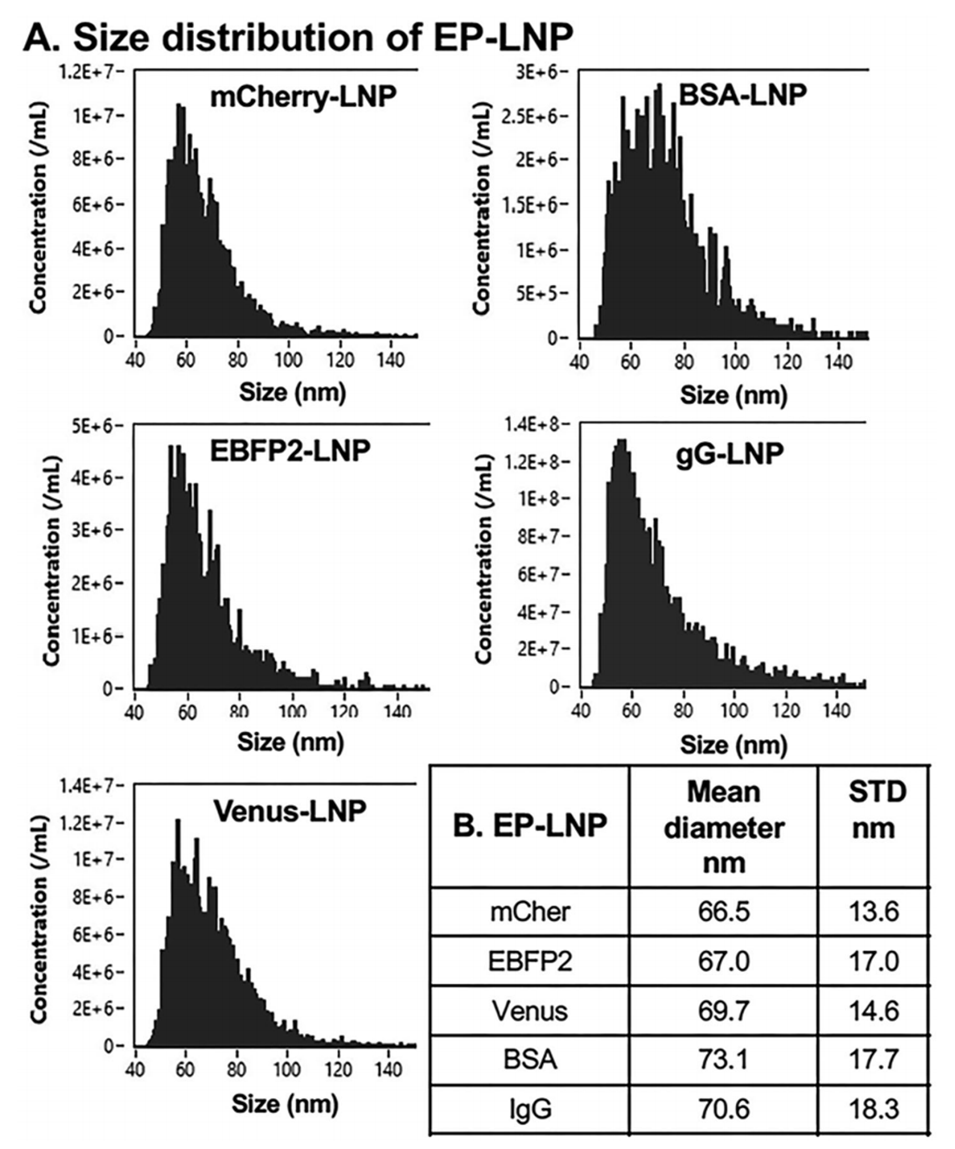 为验证封装蛋白的细胞内递送性能,实验使用了人肺腺癌细胞(A549)和乳腺癌细胞(SKBR3)。细胞分别与封装蛋白的LNP(EP-LNP)和游离蛋白孵育。荧光显微镜用于观察荧光蛋白在细胞内的分布情况,同时抗体的功能性通过检测HER2受体结合能力得以验证。