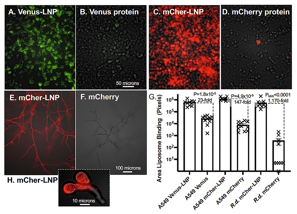 图3.用荧光EP-LNP培养A549肺癌细胞和真菌病原体R.delemar。