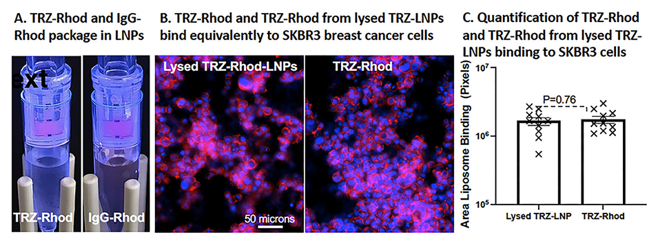 图4.Trastuzumab抗体经TRZ-LNPs封装后仍保持其活性。