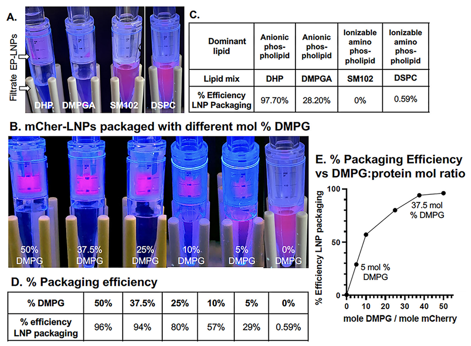 图8.蛋白质包装依赖于阴离子磷脂,而不是可电离的阳离子氨基磷脂。