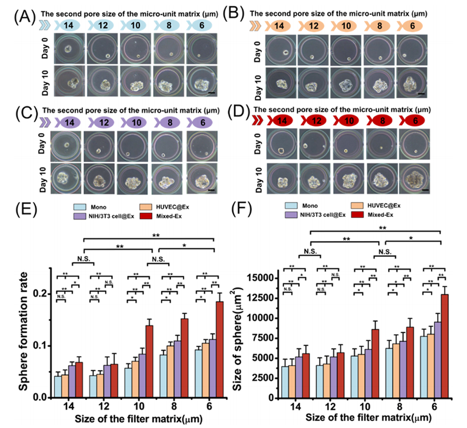 ECG模块生成梯度外泌体后,无缝连接至SFTA模块,以实现单细胞捕获及其在外泌体作用下的肿瘤球实验。
