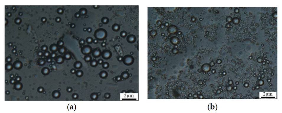 图7.两组聚合物微球的显微镜图像。(a)样品1;(b)样品2。