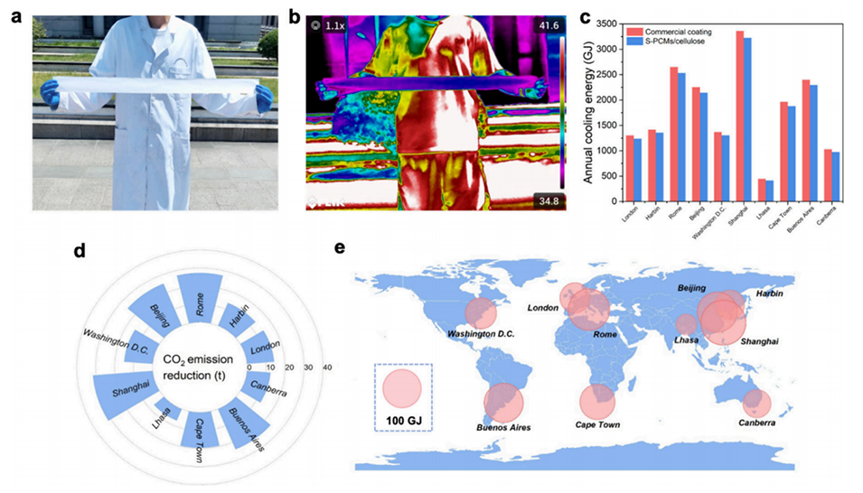 4、这种复合薄膜通过吸收、储存和释放热量适应环境变化,可有效缓解传统辐射冷却系统在冬季或夜间过度冷却的问题,有望为实际应用提供可持续的冷却技术,并显著节约能源、减少碳排放。