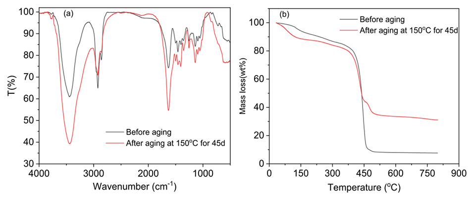 图13.经过45天的长期稳定性评估实验后,PNS微球的FT-IR光谱(a)和TGA结果(b)。