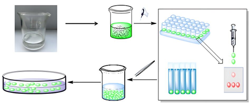 图2.P(AA-AM-ILs)凝胶微球的合成流程图。