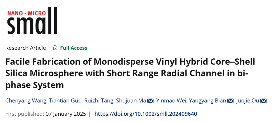近期,西北大学欧俊杰教授、边阳阳教授与中国科学院大连化学物理研究所马淑娟等人合作,开发了一种基于双相体系的简便方法,成功制备出具有短程有序径向通道的单分散乙烯基杂化核壳型硅基微球。该微球在亲水相互作用色谱(HILIC)中表现出优异的糖肽富集性能,能够在2分钟内高效富集大量N-糖肽,为生物分子分离领域提供了新的高性能材料。相关研究以“Facile Fabrication of Monodisperse Vinyl Hybrid Core–Shell Silica Microsphere with Short Range Radial Channel in bi-phase System”为题目,发表在期刊《Small》上。