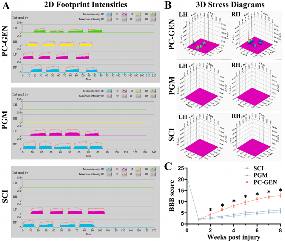 图8:PC-GEN促进了脊髓损伤后运动功能的恢复。