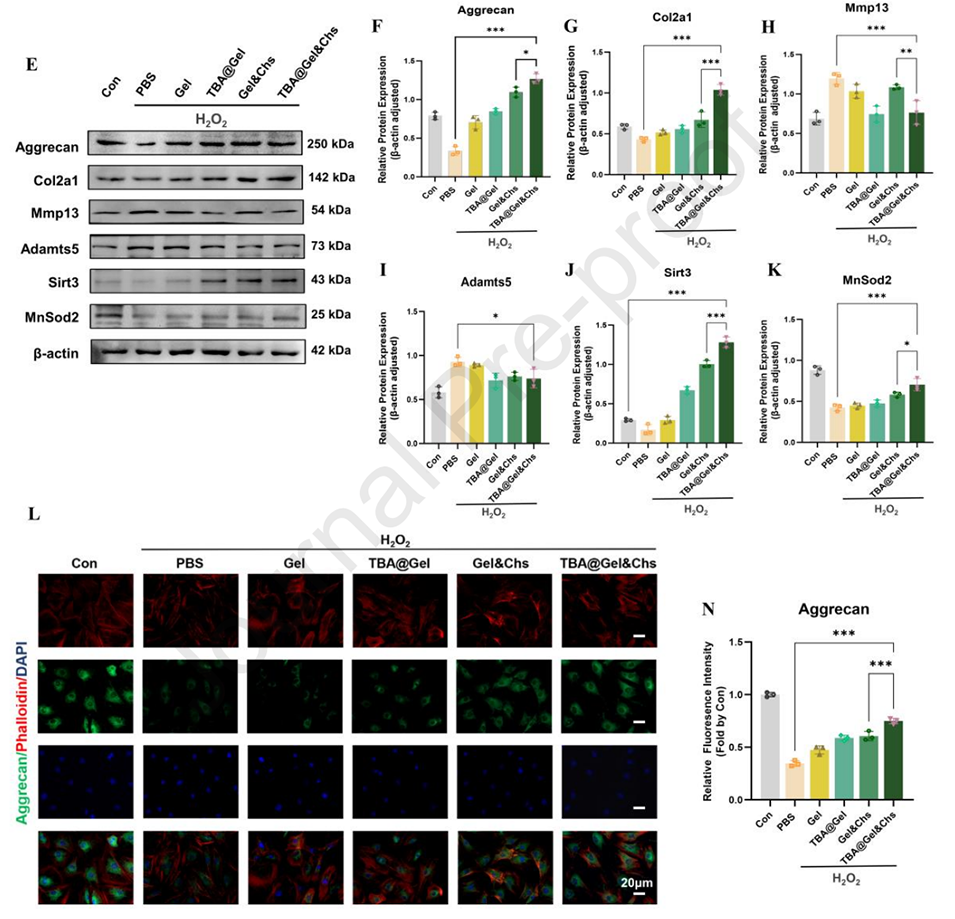 5、RNA测序进一步揭示其通过调控能量代谢、ECM重塑及抗氧化通路发挥保护作用。总之,该研究为结合抗氧化生物材料与细胞疗法治疗IVDD提供了新范式。