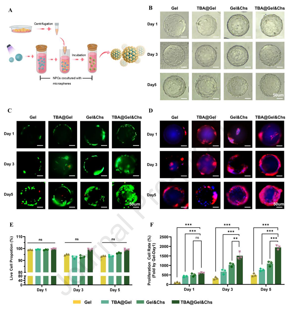 图6.髓核细胞与水凝胶微球的体外生物相容性。