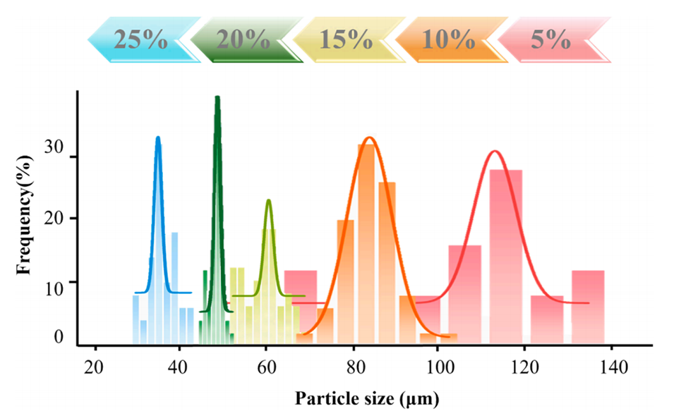 图3.不同PLGA浓度制备的RIS-MS的粒径分布。