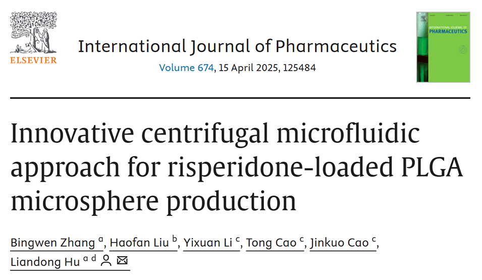 近期,河北科技大学胡连栋教授团队开发了一种创新的离心微流控技术,用于制备载利培酮的聚乳酸-羟基乙酸共聚物(PLGA)微球。该技术通过优化关键参数,如PLGA浓度、微通道内径和离心速度等,实现了对微球粒径、形态和药物释放特性的精确调控,并在动物实验中展现出良好的长效缓释效果。相关研究以“Innovative centrifugal microfluidic approach for risperidone-loaded PLGA microsphere production”为题目发表于期刊《International Journal of Pharmaceutics》。