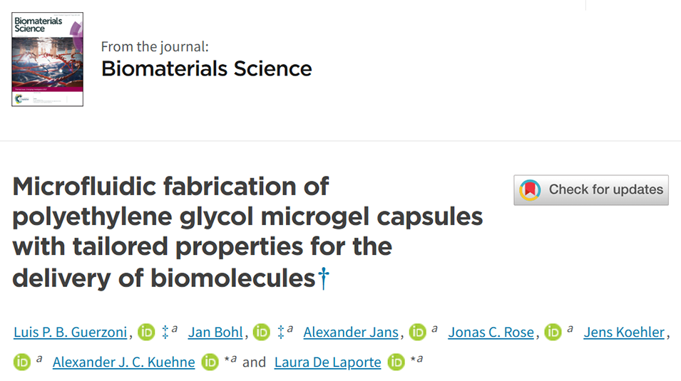 1、本研究开发了一种基于微流控技术的聚乙二醇(PEG)微凝胶胶囊制备方法,用于高效封装与控释生物分子。
