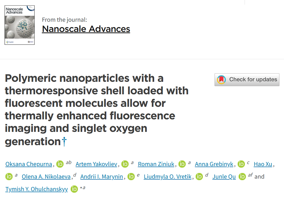 近期,有研究人员开发了一种基于聚苯乙烯核与热敏共聚物壳层的纳米颗粒体系,其壳层在38–40°C下可逆收缩,通过抑制光激发分子的内部转换显著增强了近红外染料荧光强度和光敏剂的单线态氧生成效率。实验表明,该体系在体外加热后细胞荧光信号增强2–3倍,并在小鼠模型中通过局部激光加热实现了肿瘤区域的高对比度成像与光动力治疗协同增效。相关研究以“Polymeric nanoparticles with a thermoresponsive shell loaded with fluorescent molecules allow for thermally enhanced fluorescence imaging and singlet oxygen generation”为题目,发表在期刊《Nanoscale Advances》上。
