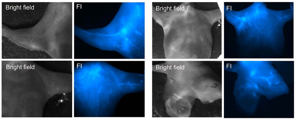 图7.通过尾静脉注射NP1D纳米制剂的小鼠的亮场和NIR-SWIR荧光图像。