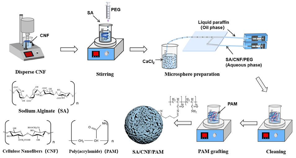 图1.SA/CNF/PAM复合水凝胶微球的制备。