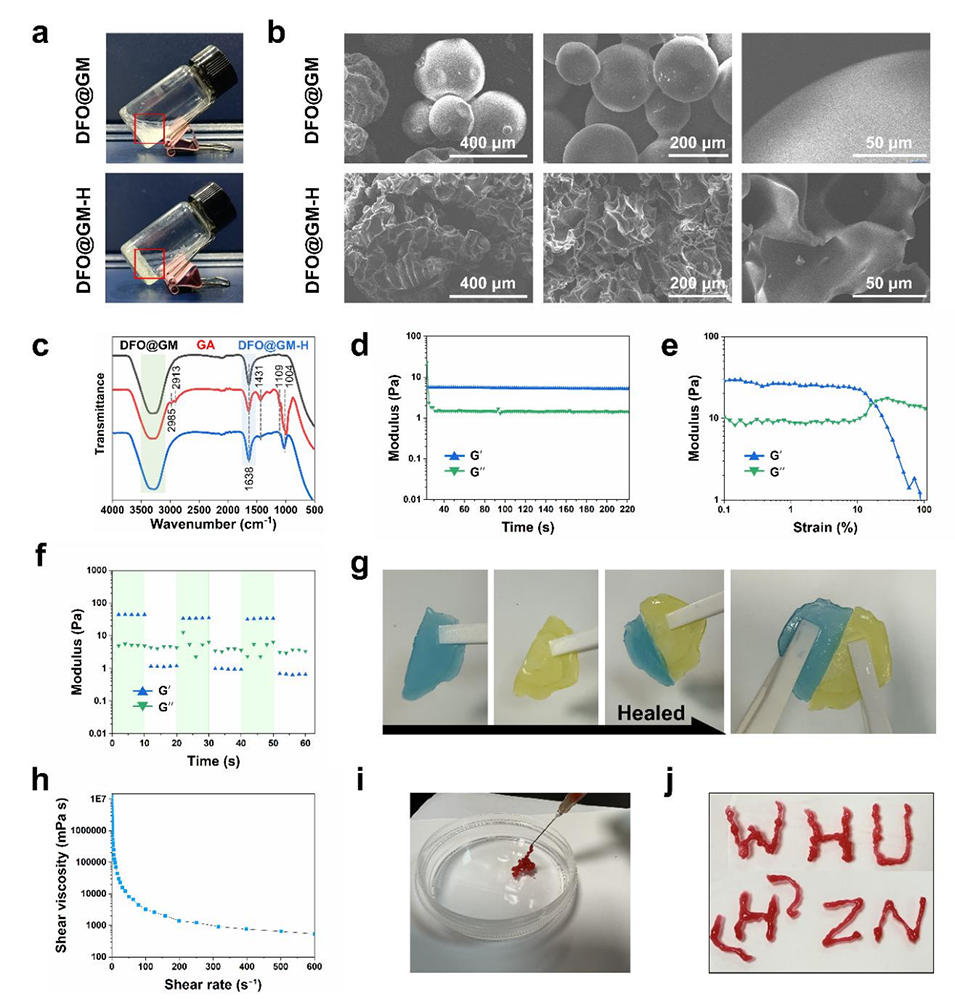 图2.DFO@GM-H水凝胶的表征与机械性能。
