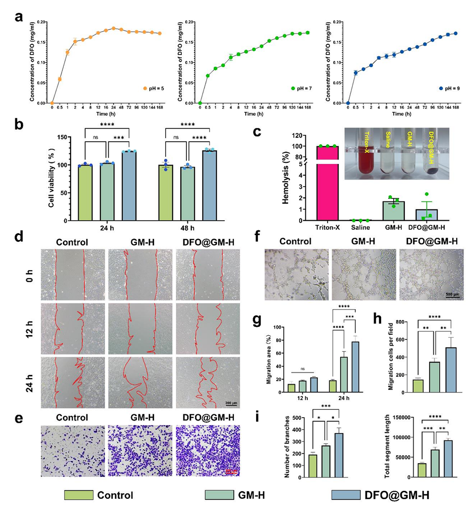 微球功能:GMs作为DFO载体,延长药物释放时间并减少突释效应。