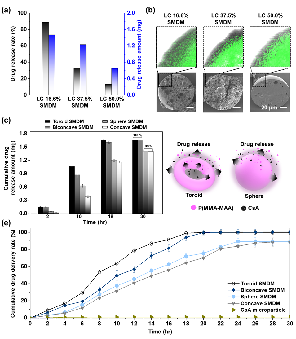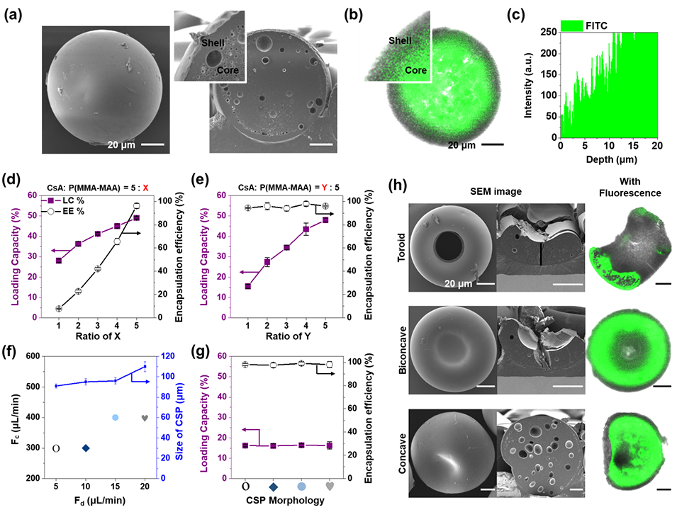 1、本研究提出一种微流控辅助的溶剂萃取共固化策略,用于制备形态可调的载药聚合物微胶囊(SMDMs),以改善疏水性药物环孢素A(CsA)的释放性能。