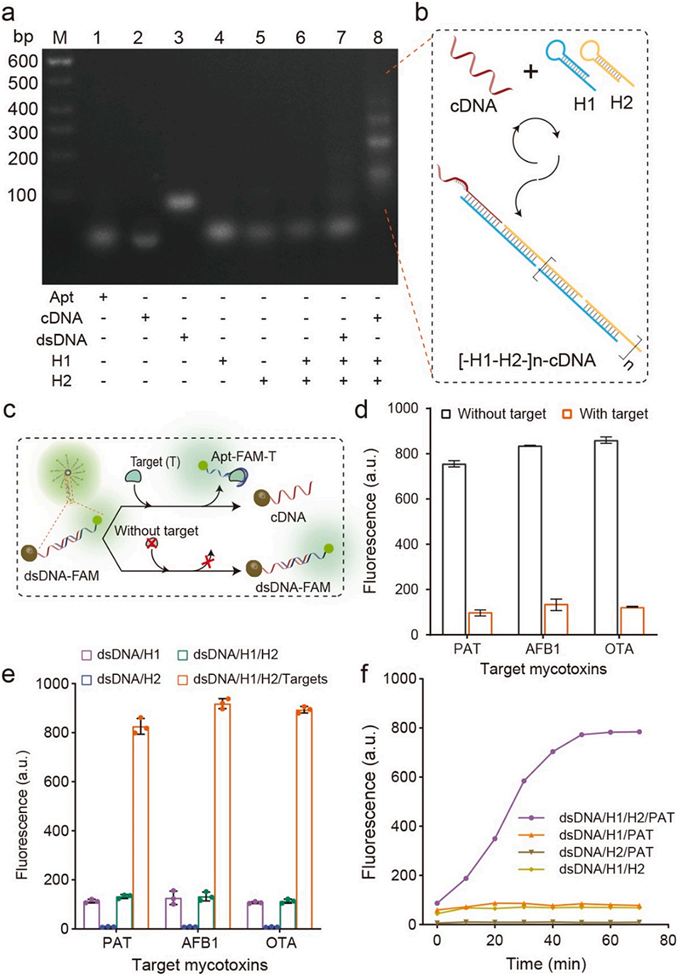 2、高灵敏度与低检测限:结合杂交链式反应(HCR)放大信号,检测限达0.033–0.10 ng/mL,满足国际严格限量标准。