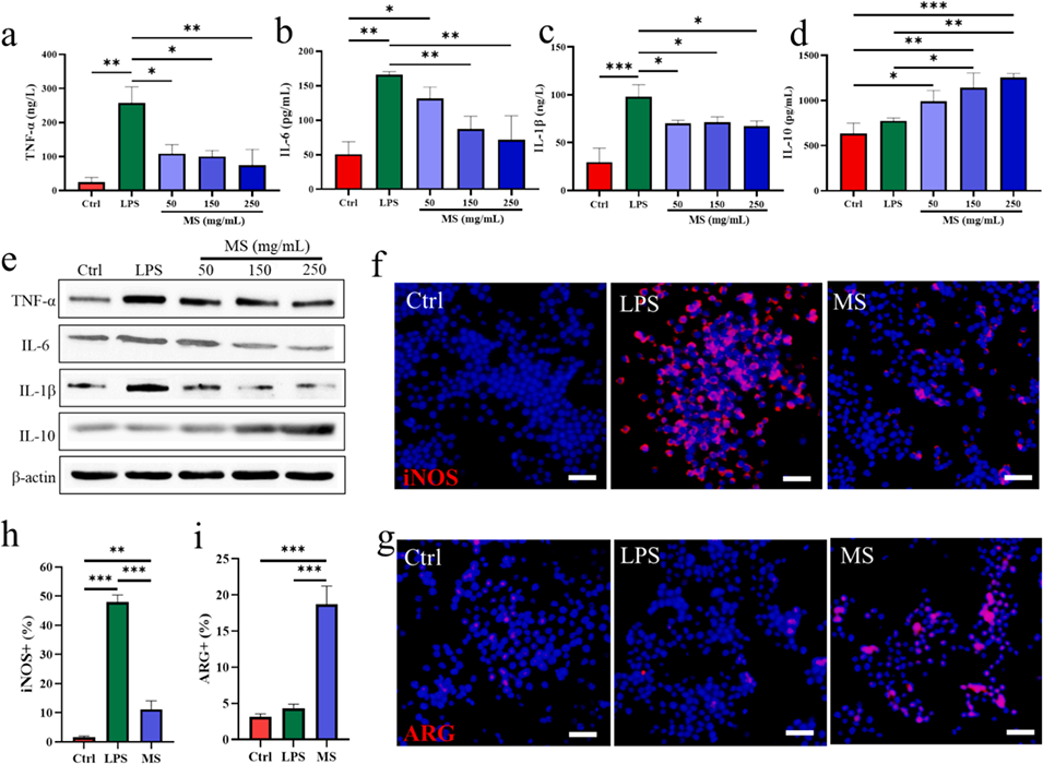 图4.微球的抗炎效果与巨噬细胞的关系。
