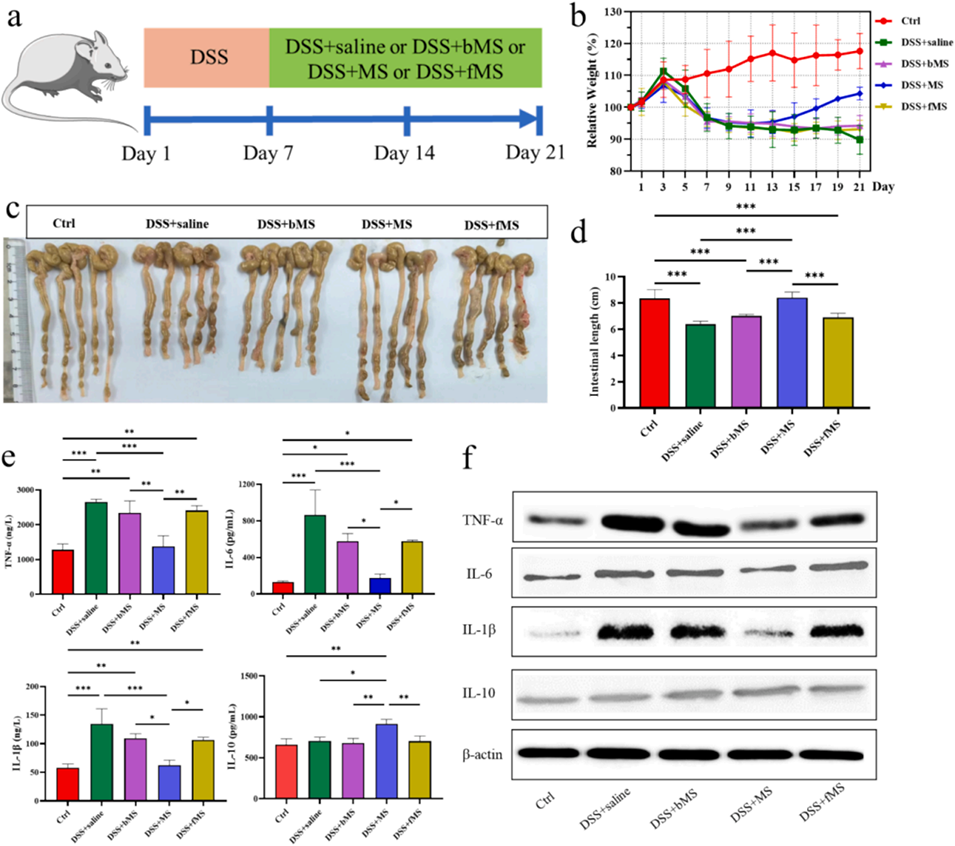体内疗效:在DSS诱导的小鼠结肠炎模型中,显著减轻肠道损伤、减少胶原沉积,并恢复黏液屏障功能。