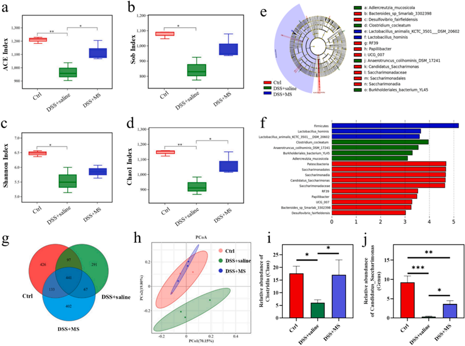 图8.微球治疗后肠道菌群的多样性和组成分析。