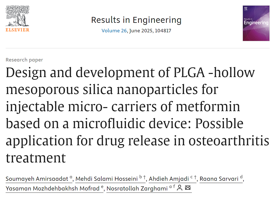 近期,有研究人员成功设计并开发了一种基于微流控技术的可注射PLGA-中空介孔二氧化硅纳米粒子复合微球,用于二甲双胍的持续递送。实验结果显示该微球能实现长达40天的线性药物释放且无初始突释,同时体外细胞实验证实其在100 μM浓度下对软骨细胞无毒性。相关研究以“Design and development of PLGA -hollow mesoporous silica nanoparticles for injectable micro- carriers of metformin based on a microfluidic device: Possible application for drug release in osteoarthritis treatment”为题目,发表在期刊《Results in Engineering》上。