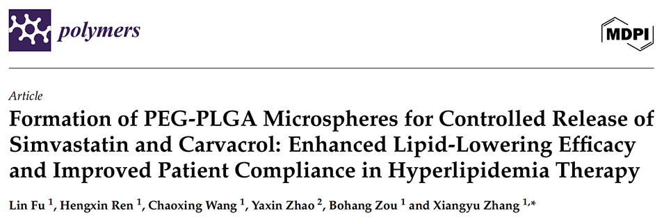 针对高脂血症需长期用药以及辛伐他汀(SIV)、香芹酚(CAV)水溶性较差的缺陷,佳木斯大学药学院张向宇团队采用水包油包水(W1/O/W2)乳化-溶剂蒸发法,成功开发了一种基于PEG-PLGA微球的药物递送系统,通过共载辛伐他汀与香芹酚实现药物的长效控释与协同增效作用。相关研究以“Formation of PEG-PLGA Microspheres for Controlled Release of Simvastatin and Carvacrol: Enhanced Lipid-Lowering Efficacy and Improved Patient Compliance in Hyperlipidemia Therapy”为题目,发表在期刊《Polymers》上。