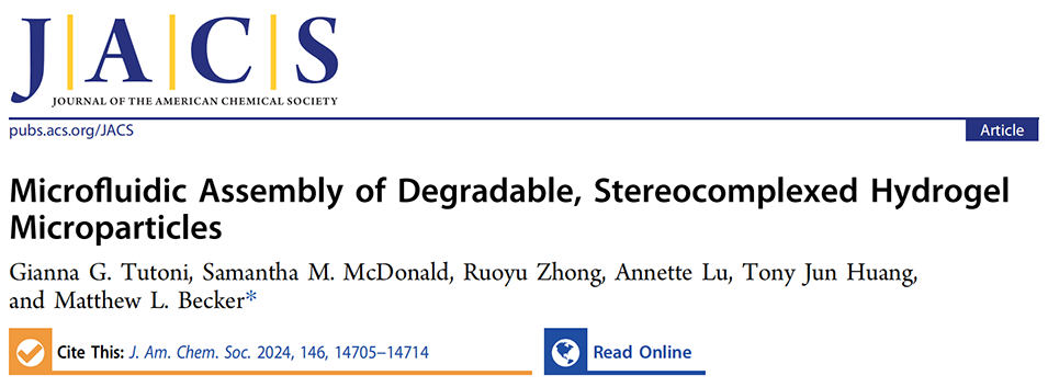 水凝胶微粒(HMPs)在组织工程和药物递送中应用广泛,但传统共价交联法存在毒性且难以降解。近期,有研究人员提出基于立体复合作用的物理交联策略,通过4臂聚乙二醇(PEG)引发L-乳酸(PLLA)和D-乳酸(PDLA)寡聚物自组装,结合微流控技术制备出尺寸可控、生物相容且可降解的立体复合水凝胶微粒(SC-HMPs)。该材料兼具高机械强度与功能化潜力,为再生医学和药物递送提供了新的解决方案。相关研究以“Microfluidic Assembly of Degradable, Stereocomplexed Hydrogel Microparticles”为题目,发表在期刊《Journal of the American Chemical Society》上。