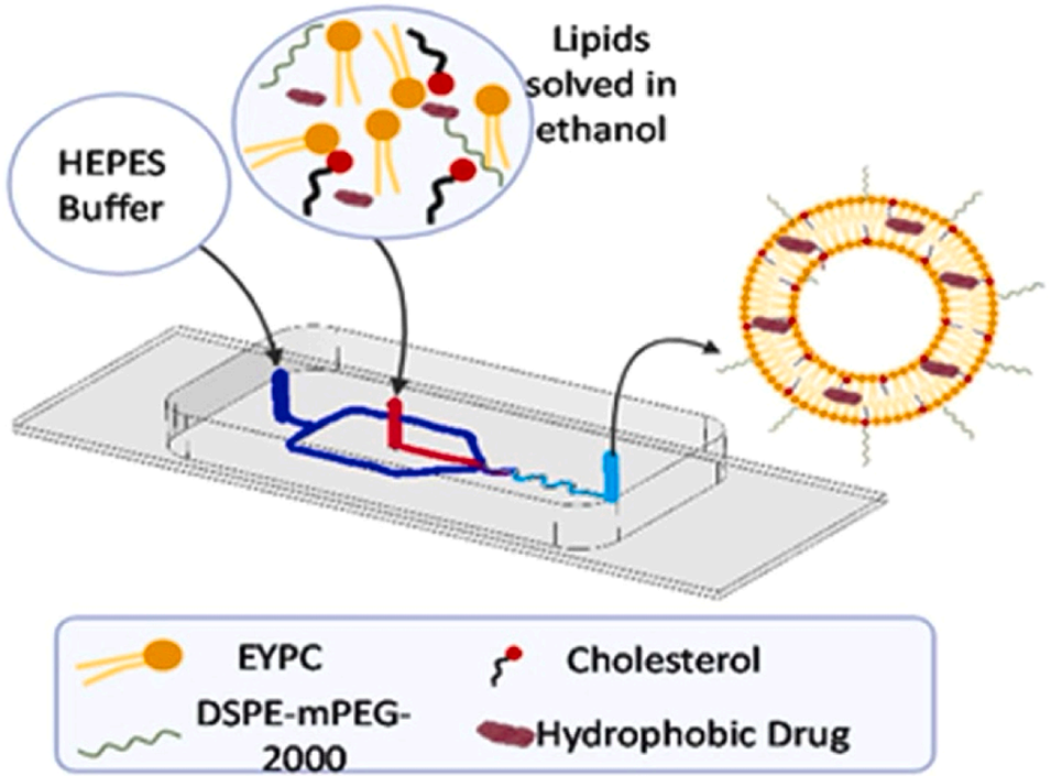 2、该技术利用快速混合机制减少药物与载体材料的分步沉淀,可将疏水性药物(如紫杉醇)的包封效率提升至97%,并支持亲水性基因药物(如siRNA)与疏水化疗药物的协同装载。