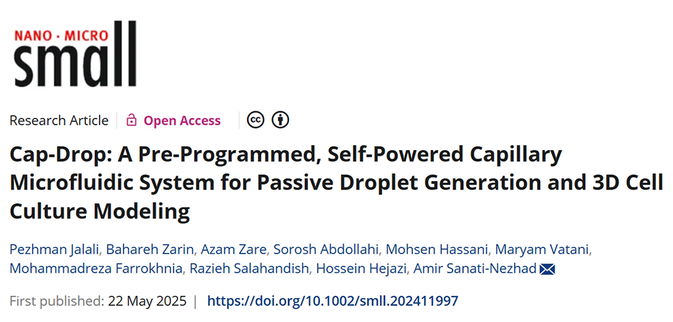 为了应对这些挑战,加拿大卡尔加里大学研究人员开发了一种新型自驱动毛细管微流控系统Cap-Drop,通过结合亲水/疏水材料与被动阀门、压力调节器等创新元件,实现了无泵驱动的均质液滴生成与固定,并成功构建高通量3D细胞培养模型,支持活细胞动态监测与药物筛选研究。相关研究以“Cap‐Drop: A Pre‐Programmed, Self‐Powered Capillary Microfluidic System for Passive Droplet Generation and 3D Cell Culture Modeling”为题目,发表在期刊《Small》上。