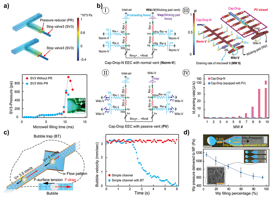 2、该系统利用毛细力自主操控流体,生成40-500 nL的均质液滴,并将其固定于微孔中,避免移动液滴的追踪难题,同时通过密封设计抑制蒸发和交叉污染。