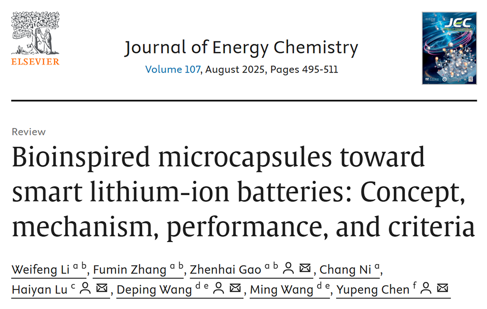 近期,吉林大学汽车工程学院高镇海教授团队联合化学学院陆海彦教授等人发表综述,系统阐述了四类仿生微胶囊(电极自修复突释型、界面形成缓释型、活性锂缓释型、阻燃突释型)在智能锂离子电池中的应用,深入探讨了其仿生设计理念(如人体激素分泌负反馈、免疫细胞控释机制等)、工作原理及性能提升效果。通过封装修复剂/阻燃剂等核心材料可解决传统添加剂直接使用导致的电化学性能下降问题。相关研究成果以“Bioinspired microcapsules toward smart lithium-ion batteries: Concept, mechanism, performance, and criteria”为题目,发表于期刊《Journal of Energy Chemistry》。