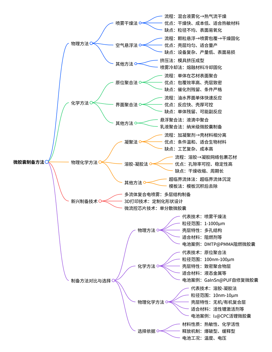 2、这些微胶囊根据其机制分为电极自修复爆破微胶囊、界面形成缓释微胶囊、活性锂缓释微胶囊和阻燃爆破微胶囊。
