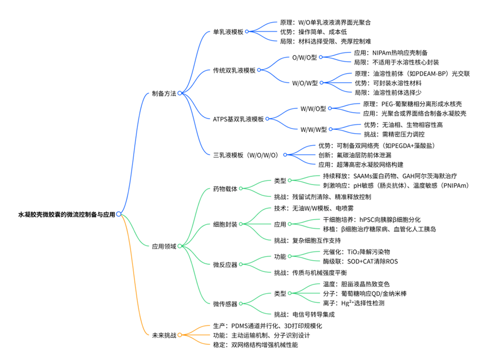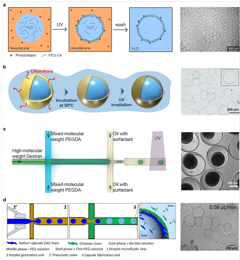 1、重点介绍微流控技术制备水凝胶壳微胶囊的最新进展,并探讨不同应用的最佳设计策略。