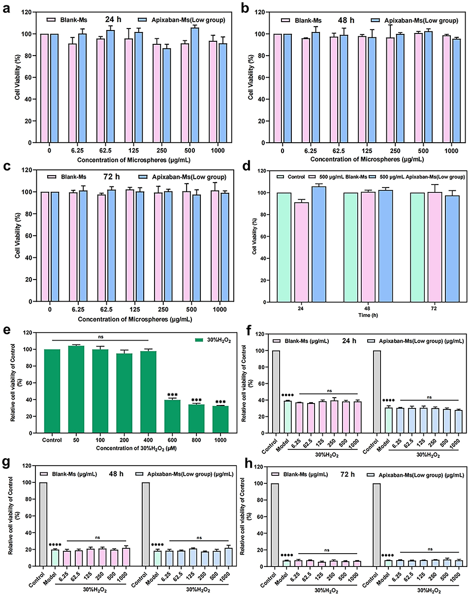图5.空白和载药微球对人脐静脉内皮细胞(HUVEC)的细胞毒性评估结果。