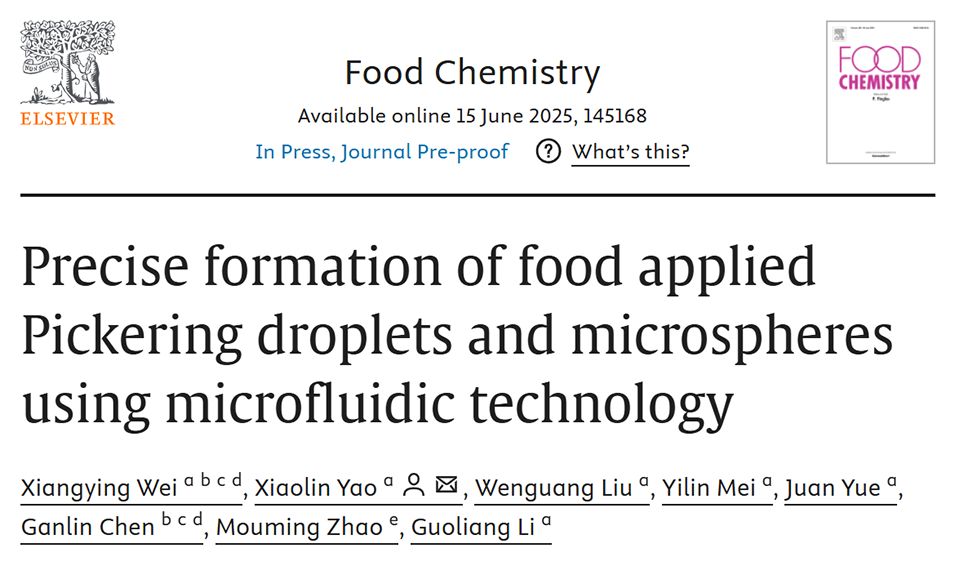液滴和微球在食品领域有着广泛的应用。然而,传统方法制备的液滴和微球表现出较差的单分散性、宽尺寸分布和不均匀的形态。近期,陕西科技大学食品学院姚晓琳教授团队利用微流控技术精准制备了食品级Pickering液滴与微球,该方法显著提升了体系的均匀性与可控性。相关研究以“Precise formation of food applied Pickering droplets and microspheres using microfluidic technology”为题目,发表在期刊《Food Chemistry》上。