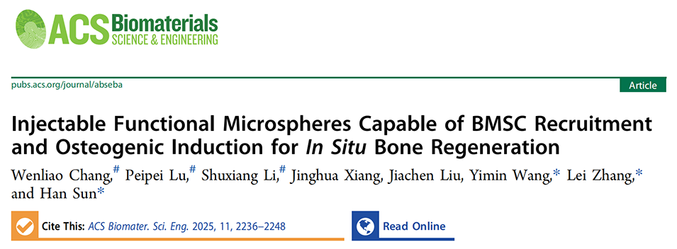 近期,常州市第一人民医院骨关节科王益民、孙晗与皖南医学院张蕾等人合作,开发出一种新型可注射功能性微球。该微球以多孔壳聚糖为基材,通过生物素-链霉亲和素对固定CD271抗体,并负载BMP-2,实现骨髓间充质干细胞(BMSC)的招募及成骨诱导。相关研究以“Injectable Functional Microspheres Capable of BMSC Recruitment and Osteogenic Induction for In Situ Bone Regeneration”为题目,发表在期刊《ACS Biomaterials Science & Engineering》上。研究显示,这种微球能高效招募BMSC并诱导其向成骨细胞分化,在大鼠骨缺损模型中显著促进骨再生,为临床骨缺损修复提供了新策略。