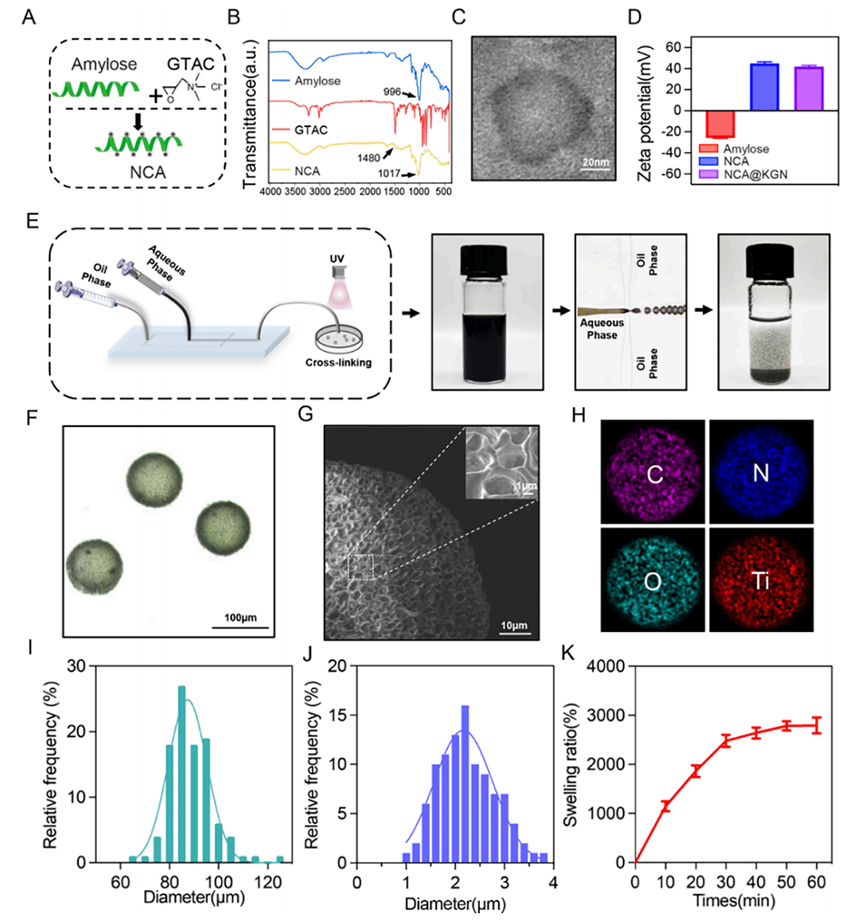 图1. H/M-NCA@KGN微球的合成与表征